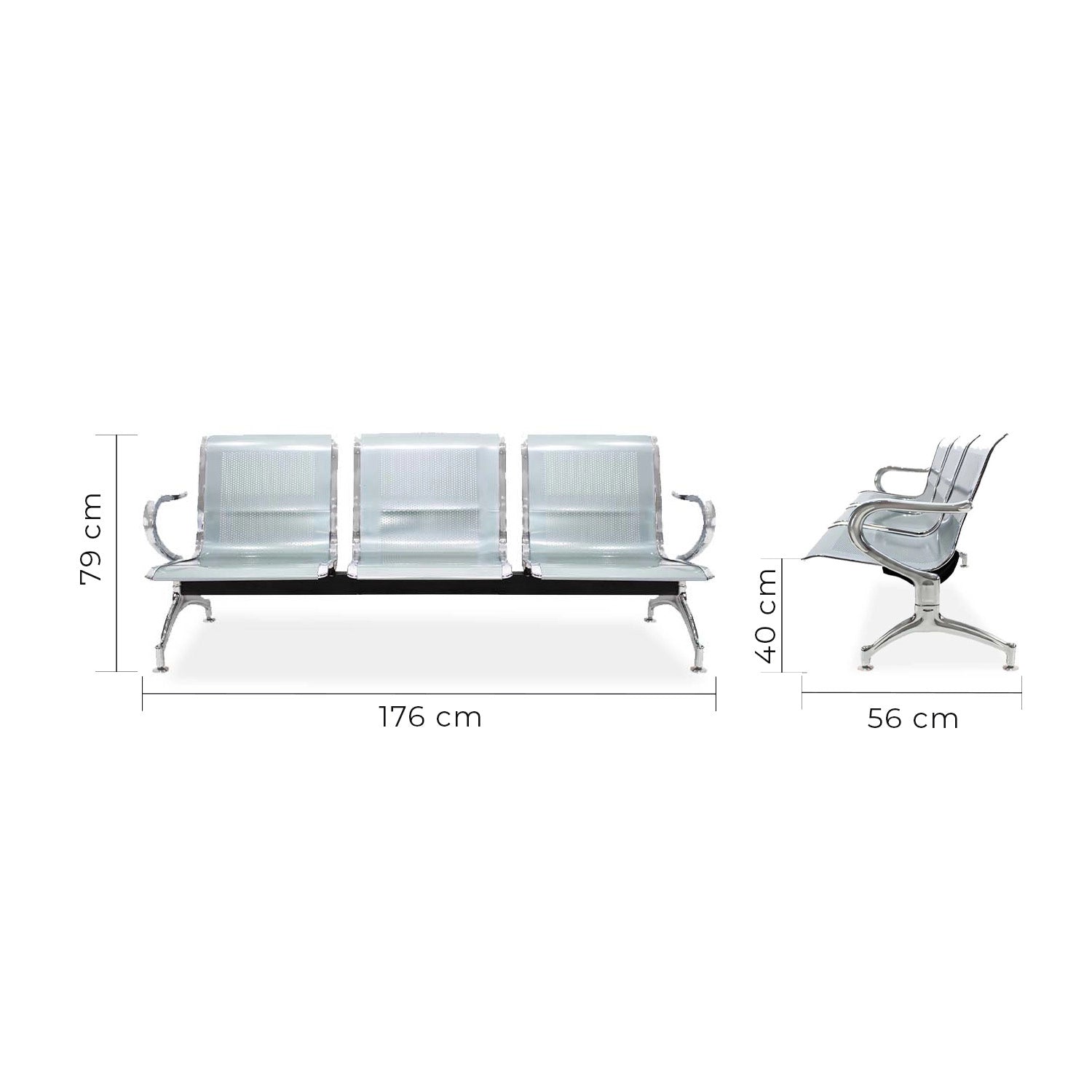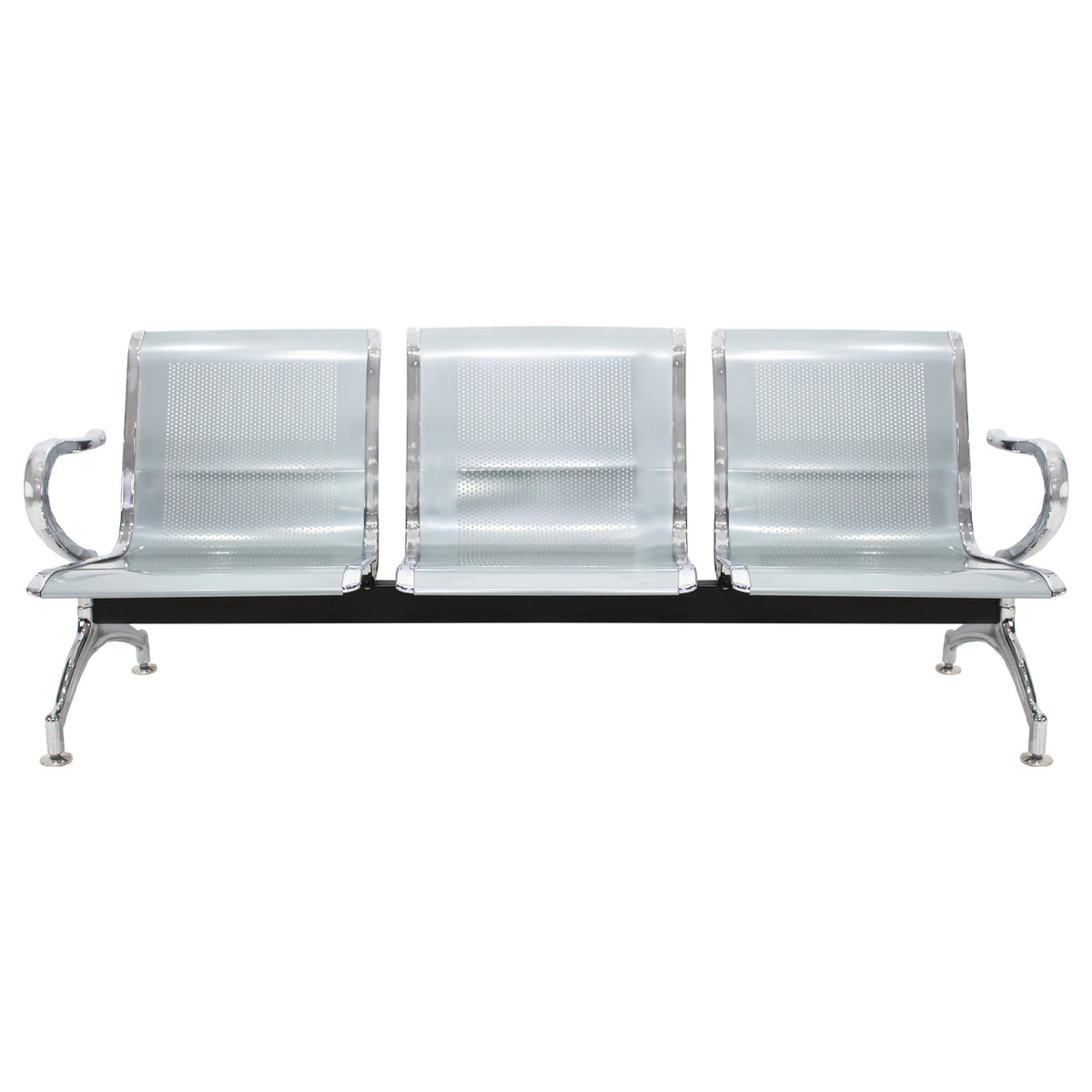 La banca metálica de 3 plazas es una opción duradera y segura para espacios públicos. Su diseño robusto y moderno garantiza un excelente desempeño en zonas de alto tráfico como hospitales, oficinas de gobierno, bancos y centros comerciales. Hecha totalmente de acero con acabados elegantes.