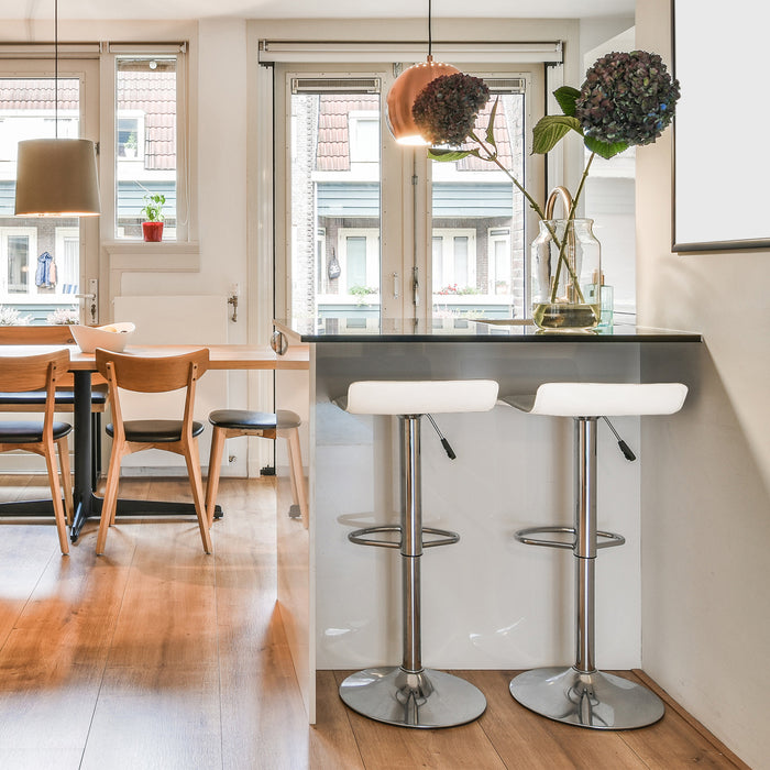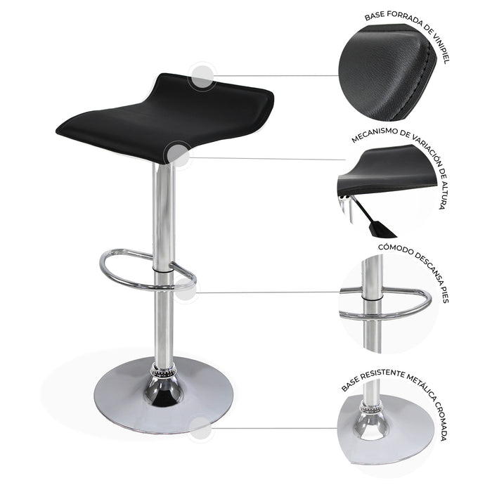El Set de 2 Bancos Sion es la combinación perfecta entre diseño moderno y funcionalidad. Su asiento cuadrado forrado en tela tipo piel sintética ofrece una superficie cómoda y fácil de limpiar, ideal para el uso diario o en eventos especiales. Su estructura metálica con acabado cromado no solo le da un toque sofisticado, sino que también proporciona firmeza y durabilidad. Gracias a su reposapiés integrado y diseño compacto, el Banco Sion se adapta con facilidad a cualquier ambiente, desde cocinas hasta salones de eventos, barras o espacios comerciales.