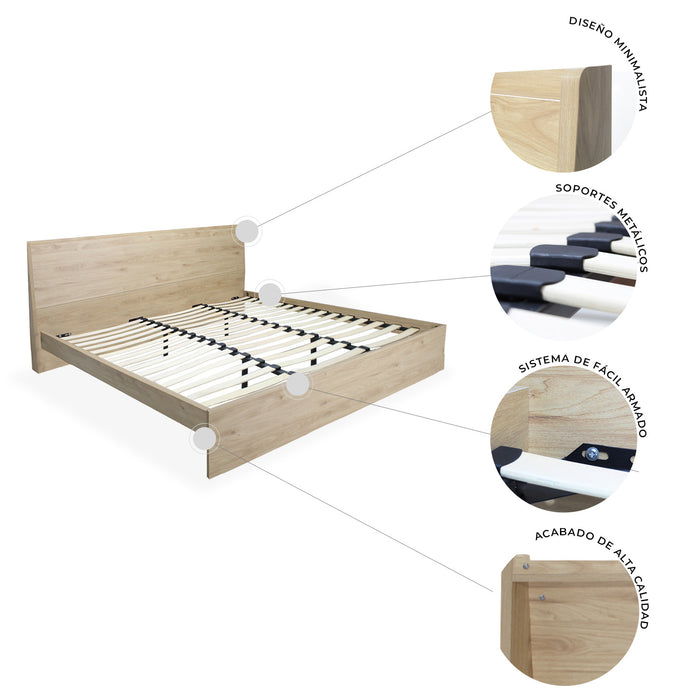 La cama matrimonial Marsala AS03 de MUNDO IN MUEBLES combina un diseño minimalista con materiales de alta calidad, ideal para transformar tu dormitorio en un espacio moderno, cómodo y funcional. Su estilo simple y su elegante acabado la convierten en una opción perfecta para decoraciones contemporáneas y minimalistas. Esta cama está fabricada con una estructura robusta y soportes metálicos resistentes, que garantizan estabilidad y durabilidad durante años. Gracias a su sistema de fácil armado, podrás montarla de manera rápida y sencilla, permitiéndote disfrutar de un mueble funcional sin complicaciones.