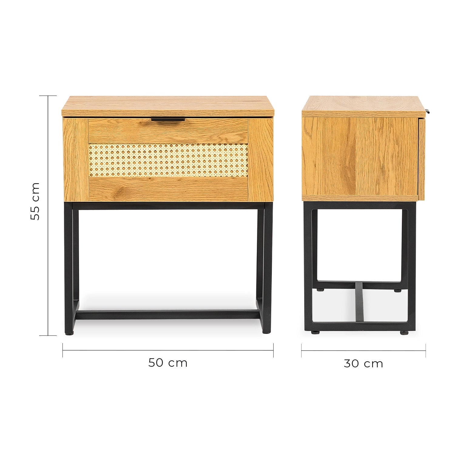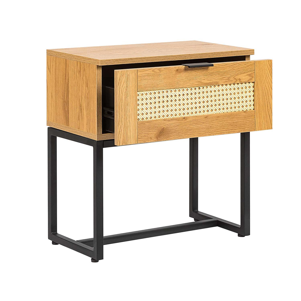 ¡Para la decoración tu hogar! Buró Xelha fabricado en melamina color roble con frentes de marco de melamina color roble y tapiz en rattan color natural. Estuctura metálica color negro en base. Cuenta con 1 cajón con jaladera color negro y correderas. Decora tu espacio dándole uso como Cómoda Cajonera para Recamara, Mesa Lateral, de Noche Buro Minimalista u organizador. Ideal para espacios reducidos, perfecto para complementar tu lugar favorito con un toque de elegancia y buen gusto ¡Con tan solo un Clic, llévatelo a tu domicilio!