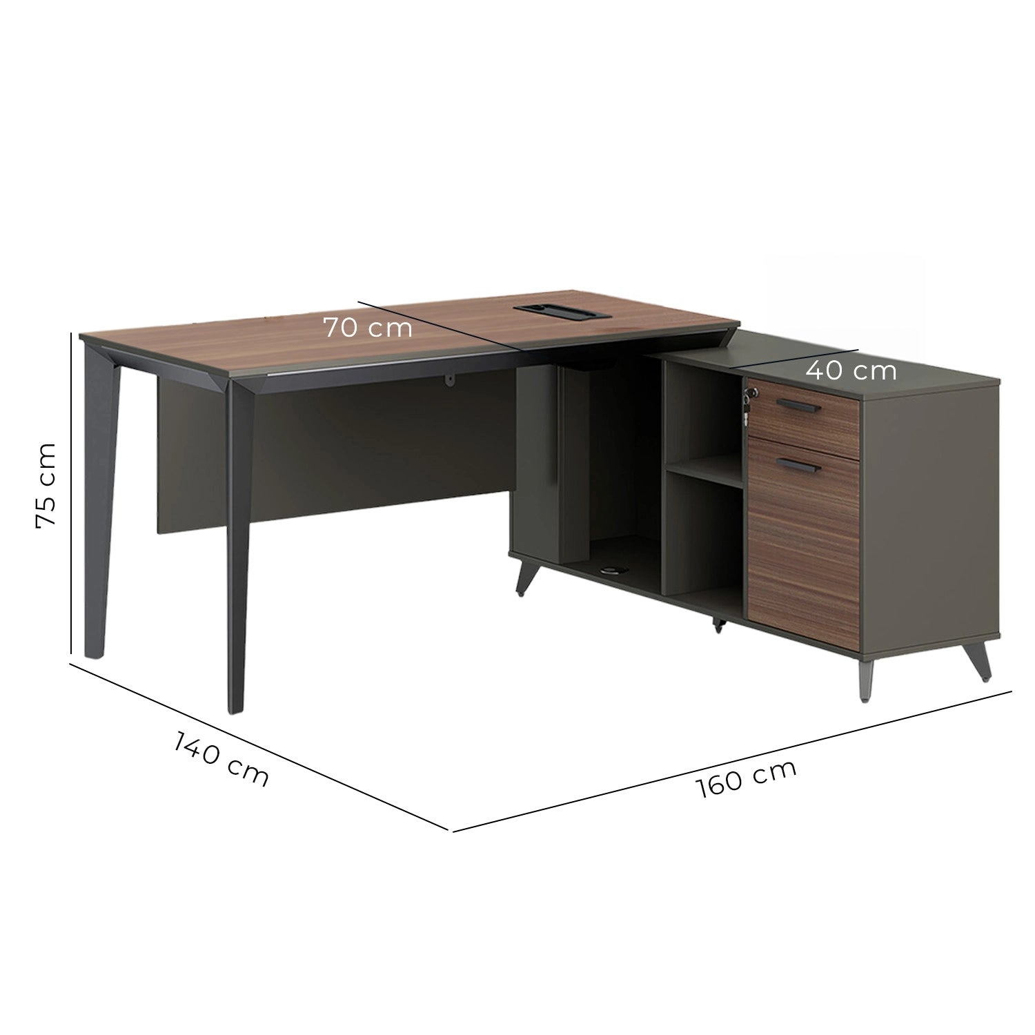 - Escritorio Grande: Diseño en Forma de L para Máxima Eficiencia El Escritorio Cracovia de Mundo In ofrece un amplio espacio de trabajo con sus dimensiones de 160 x 140 x 75 cm, perfecto para oficinas modernas.