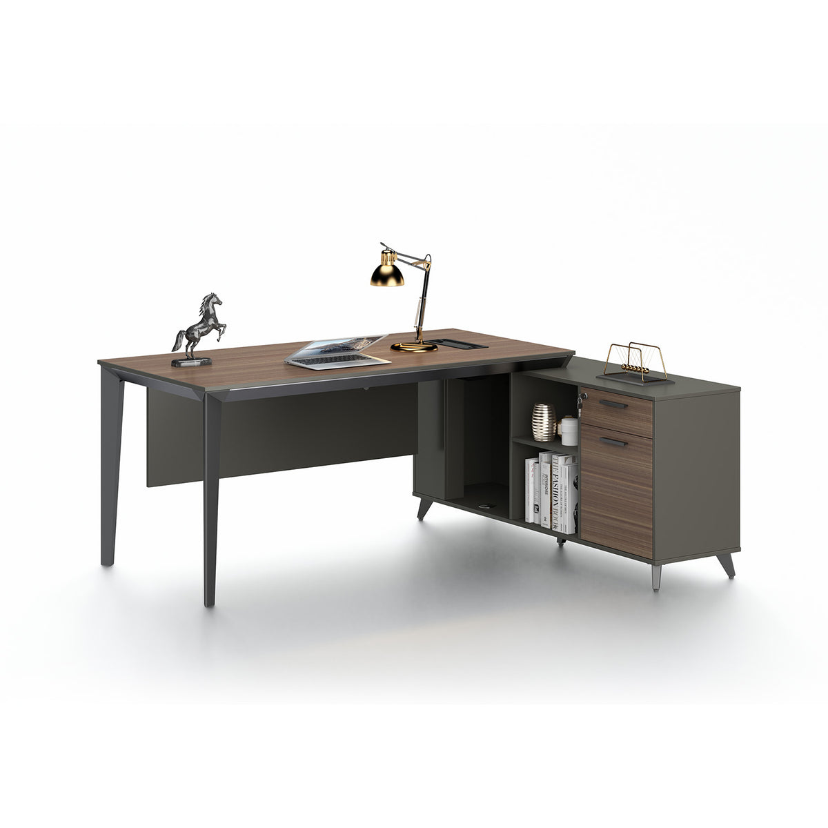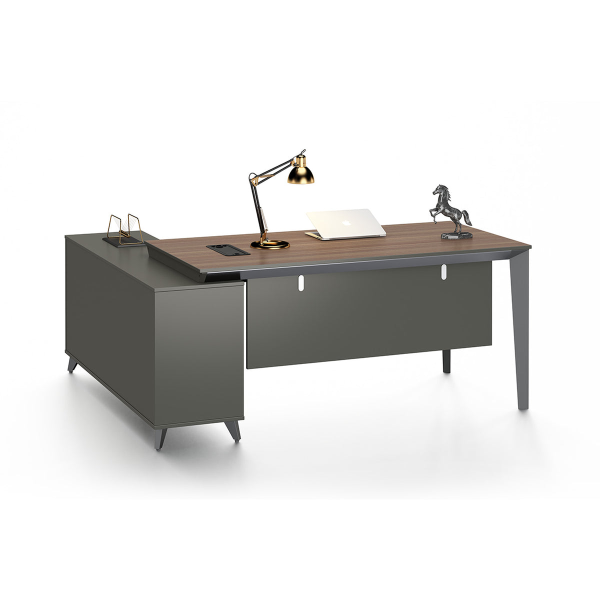 El Escritorio Ejecutivo en Forma de L Cracovia de Mundo In se presenta como una elección ideal para aquellos profesionales que buscan una combinación perfecta de funcionalidad y estilo. El acabado en gris nogal del escritorio no solo proporciona una atmósfera contemporánea y profesional, sino que también añade un toque de sofisticación a cualquier espacio de oficina. Este diseño, cuidadosamente elegido, se adapta a una variedad de entornos de trabajo, desde los más tradicionales hasta los más modernos.