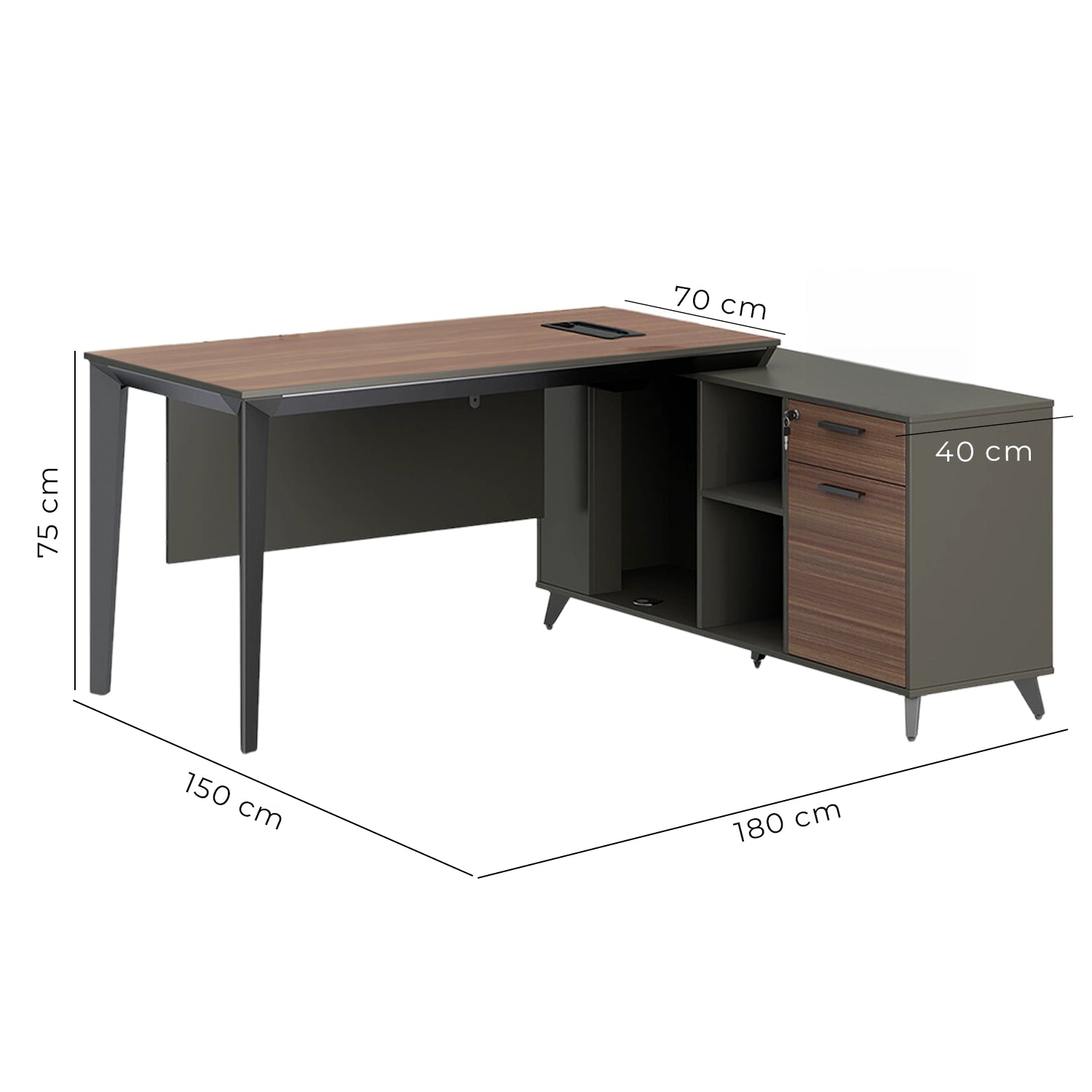 • Escritorio Grande: Diseño Expansivo en Forma de L El Escritorio Ejecutivo Cracovia de Mundo In, con dimensiones de 180 x 150 x 75 cm, proporciona un amplio espacio de trabajo para una máxima productividad.