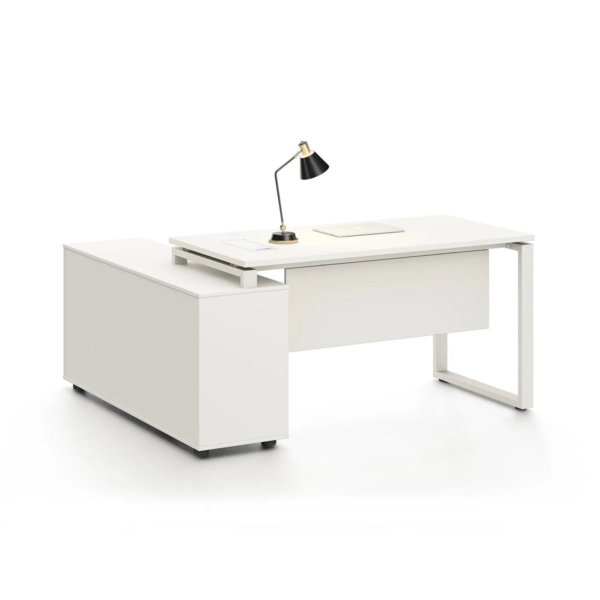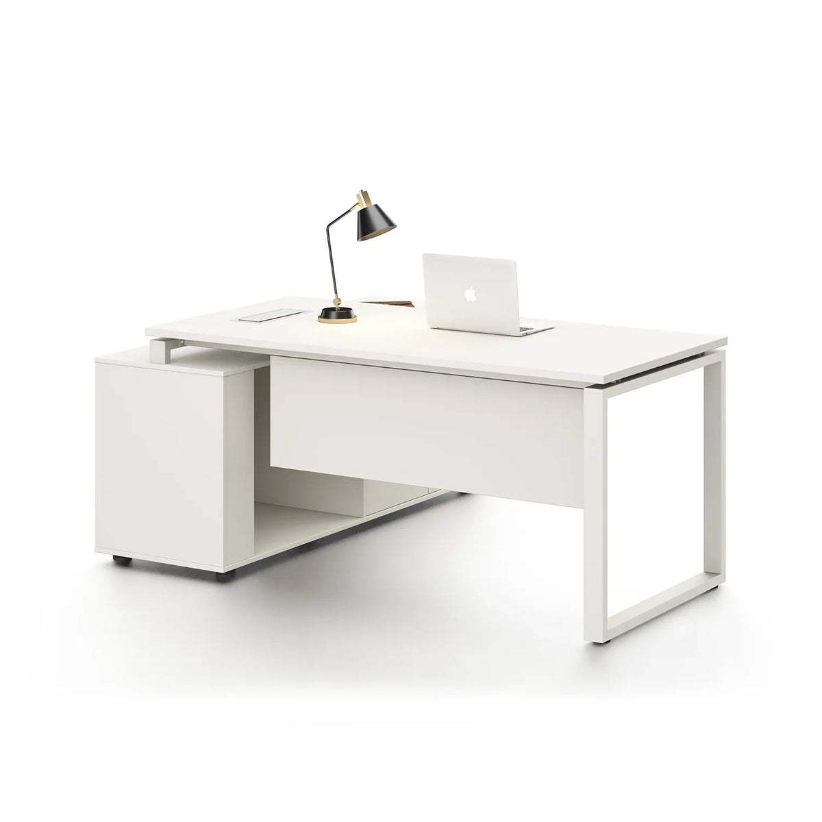 - Escritorio Grande: Espacio Amplio de Trabajo Escritorio blanco ejecutivo Zadar de Mundo In, con amplias dimensiones de 160 x 140 x 75 cm, perfecto para un espacio de trabajo eficiente y organizado.
