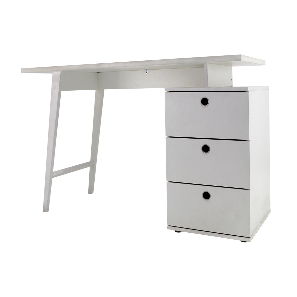 Escritorio multifuncional para cualquier tipo de actividad estudiantil y/o laboral. De estructura rígida y resistente, cuenta con una limpia área de trabajo, dos firmes soportes ligeramente inclinados a su lado izquierdo y tres amplios espacios de almacenamiento al derecho, convirtiéndose en el elemento ideal para sumar a cualquier tipo de espacio una dosis perfecta de comodidad y buen diseño.