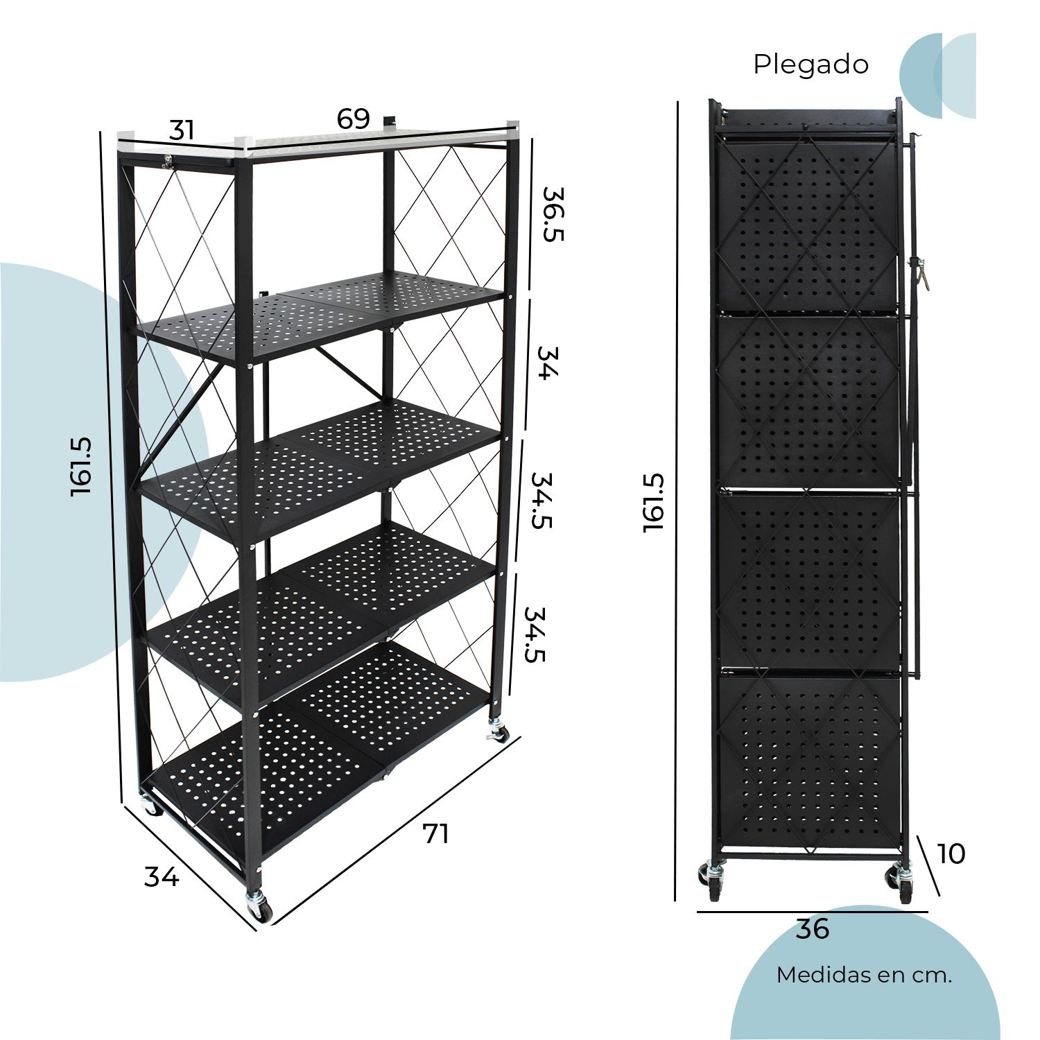 - DISEÑO PLEGABLE Y EFICIENTE: El estante Tartu 1685 Alto de MUNDO IN MUEBLES cuenta con 5 niveles y un sistema plegable que facilita su transporte y almacenamiento.