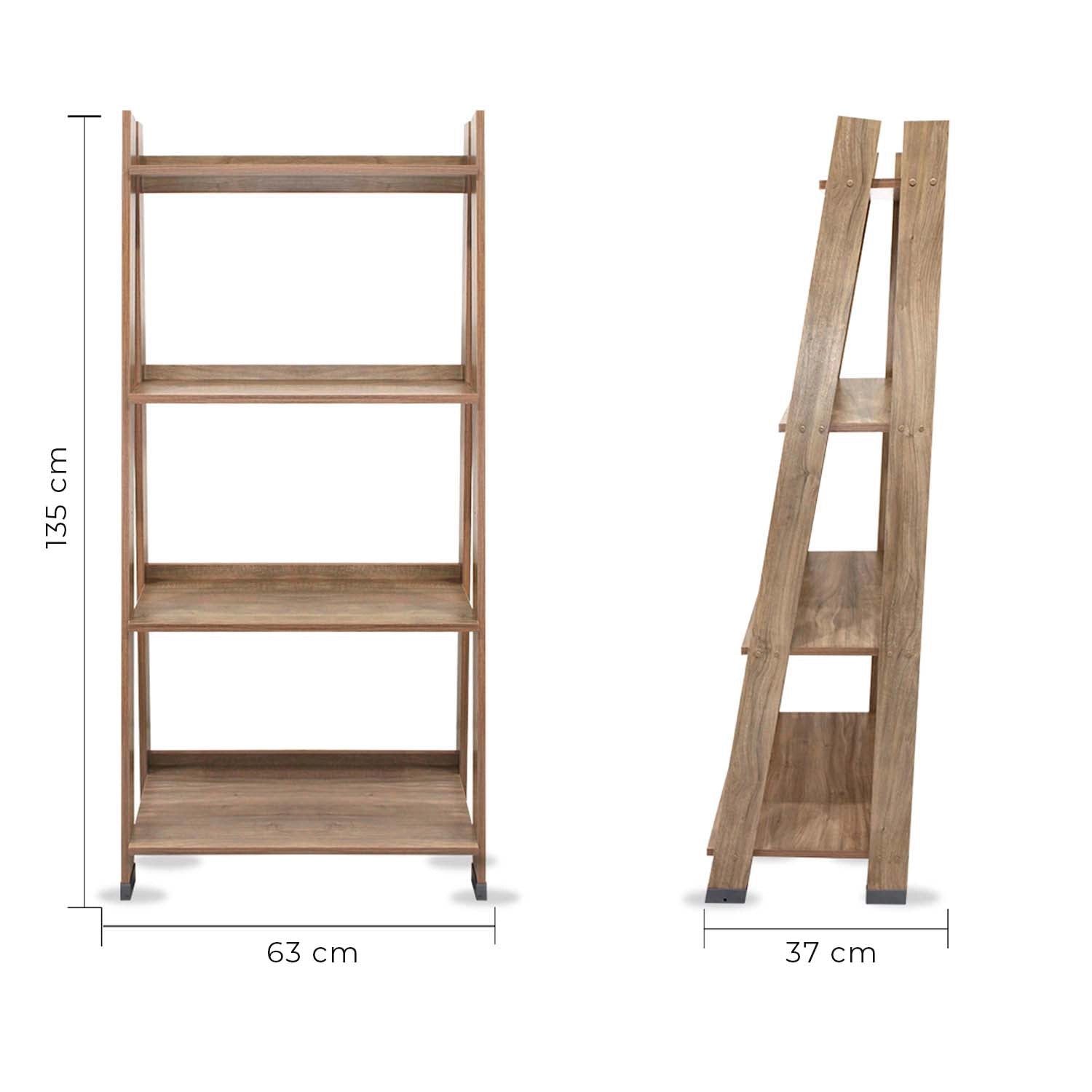 - Cuatro repisas versátiles: Cuenta con 4 compartimentos de distintos tamaños, ideales para organizar libros, portarretratos, plantas decorativas o accesorios de oficina.