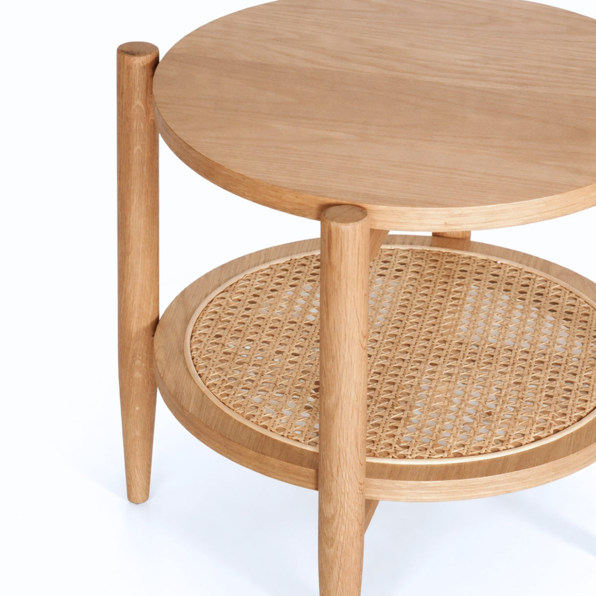 La Mesa Lateral Kangar es una pieza decorativa y funcional que combina materiales naturales con un diseño contemporáneo, ideal para complementar salas, recámaras o terrazas techadas. Su diseño compacto y elegante integra cubierta de MDF enchapado en encino o nogal, patas de madera maciza en el mismo acabado y una atractiva base inferior de rattan sintético, creando un balance perfecto entre calidez, textura y durabilidad.