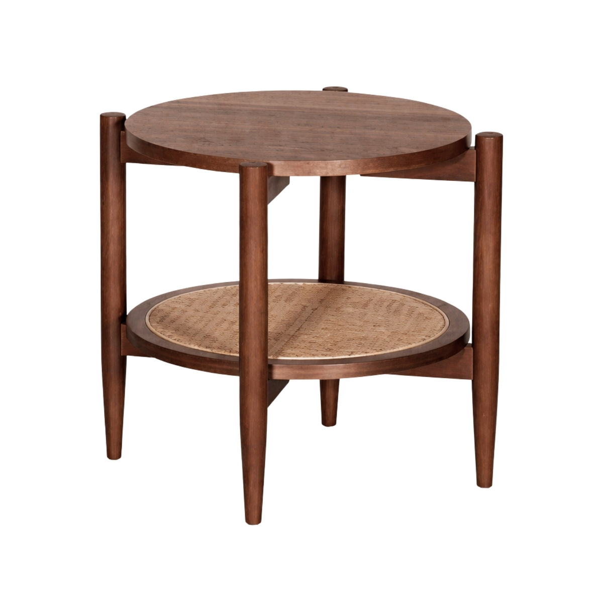 La Mesa Lateral Kangar es una pieza decorativa y funcional que combina materiales naturales con un diseño contemporáneo, ideal para complementar salas, recámaras o terrazas techadas. Su diseño compacto y elegante integra cubierta de MDF enchapado en encino o nogal, patas de madera maciza en el mismo acabado y una atractiva base inferior de rattan sintético, creando un balance perfecto entre calidez, textura y durabilidad.