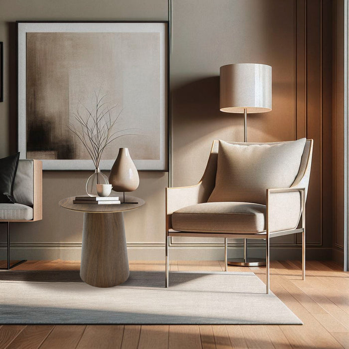 - DISEÑO NATURAL Y ELEGANTE: La mesa lateral 1371 Padar de MUNDO IN MUEBLES combina una cubierta de MDF con una fina chapa de madera que aporta un toque cálido y sofisticado a tus espacios.