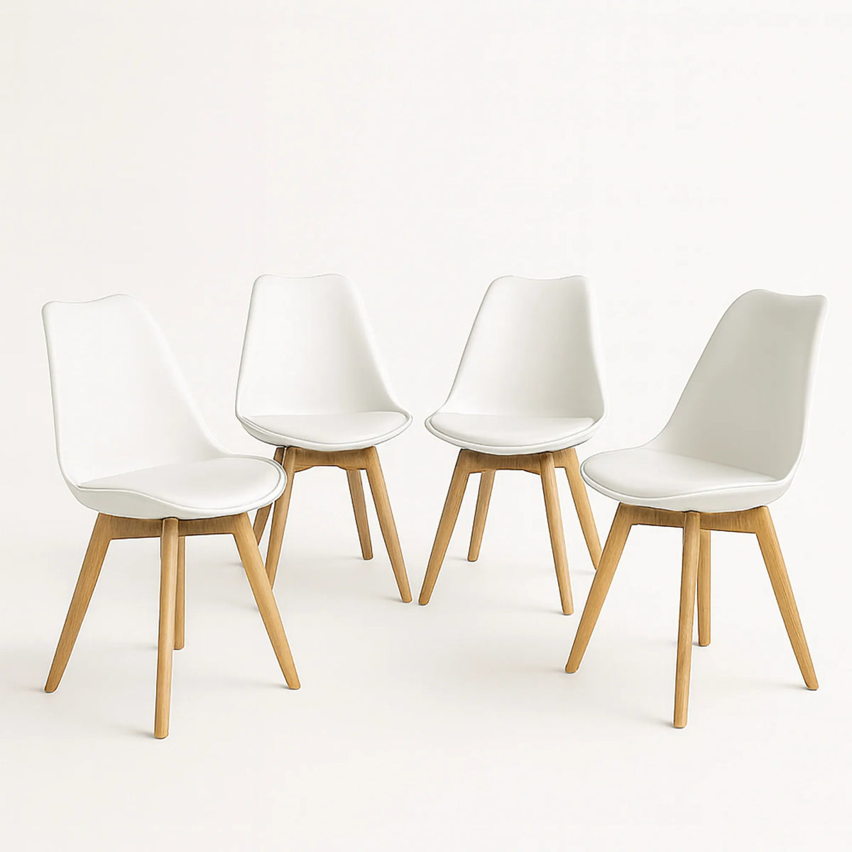 El set de 4 sillas Frankfurt tipo Eames aporta estilo y confort a comedor, oficina o sala. Asiento de polipropileno con cojín acojinado y base con patas de madera reforzadas para estabilidad. Ideal como juego de sillas para comedor moderno, es perfecto para invitar a amigos o familiares a pasar un rato agradable en tu casa o para recibir a tus colaboradores en una oficina perfectamente equipada. El asiento orgánico de estas sillas de plástico es fabricado en polipropileno con un cojín acojinado PU tipo vinipiel: el elemento ideal para sumar a cualquier tipo de espacio una dosis perfecta de comodidad y buen diseño. Su diseño elegante y simple combina a la perfección con distintos diseños de decoración.