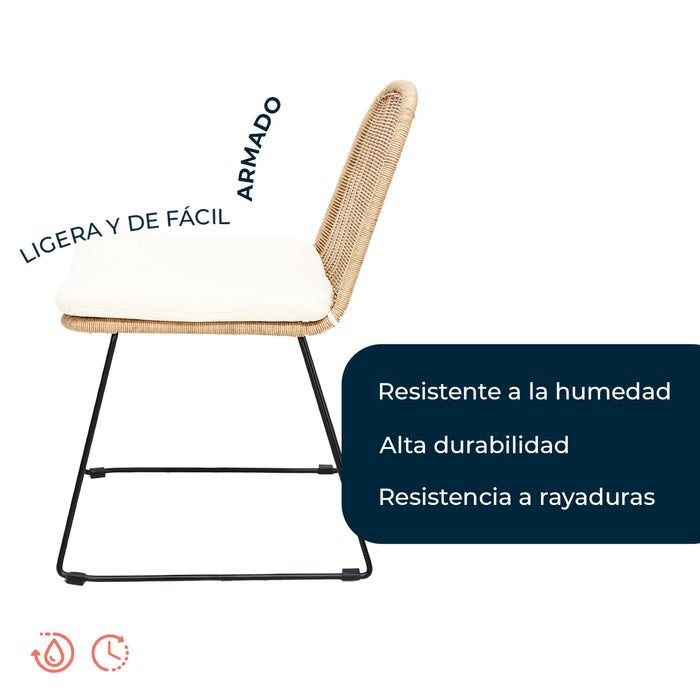- DURABILIDAD EXCEPCIONAL: Construida para resistir los elementos, esta silla garantiza una vida útil prolongada y mantenimiento mínimo, ofreciendo resistencia y durabilidad excepcionales en todo tipo de clima, únicamente apta para espacios techados al aire libre.