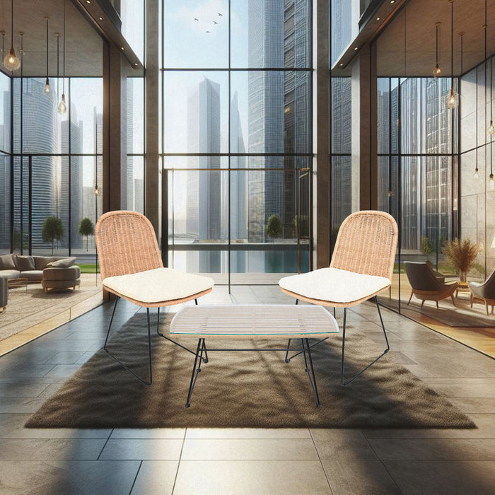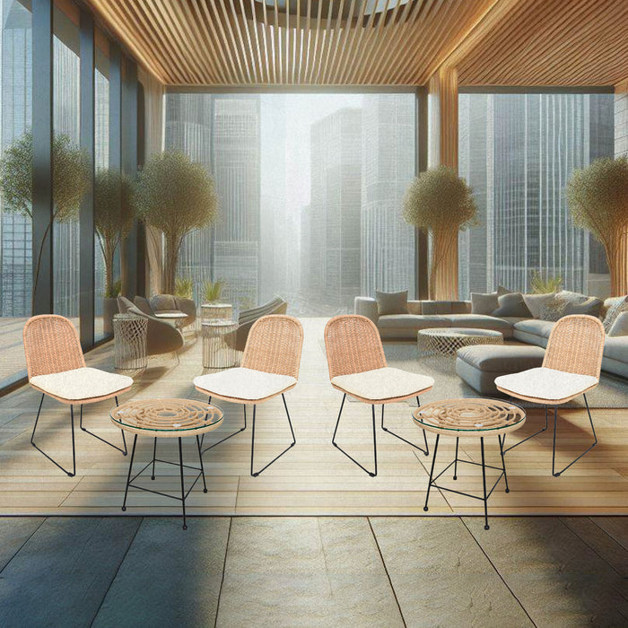 - ELEGANCIA MODERNA Y NATURAL: Diseño sofisticado que combina la robustez del acero con la estética del rattan natural, ideal para espacios al aire libre; aporta un toque de elegancia y naturalidad a cualquier entorno