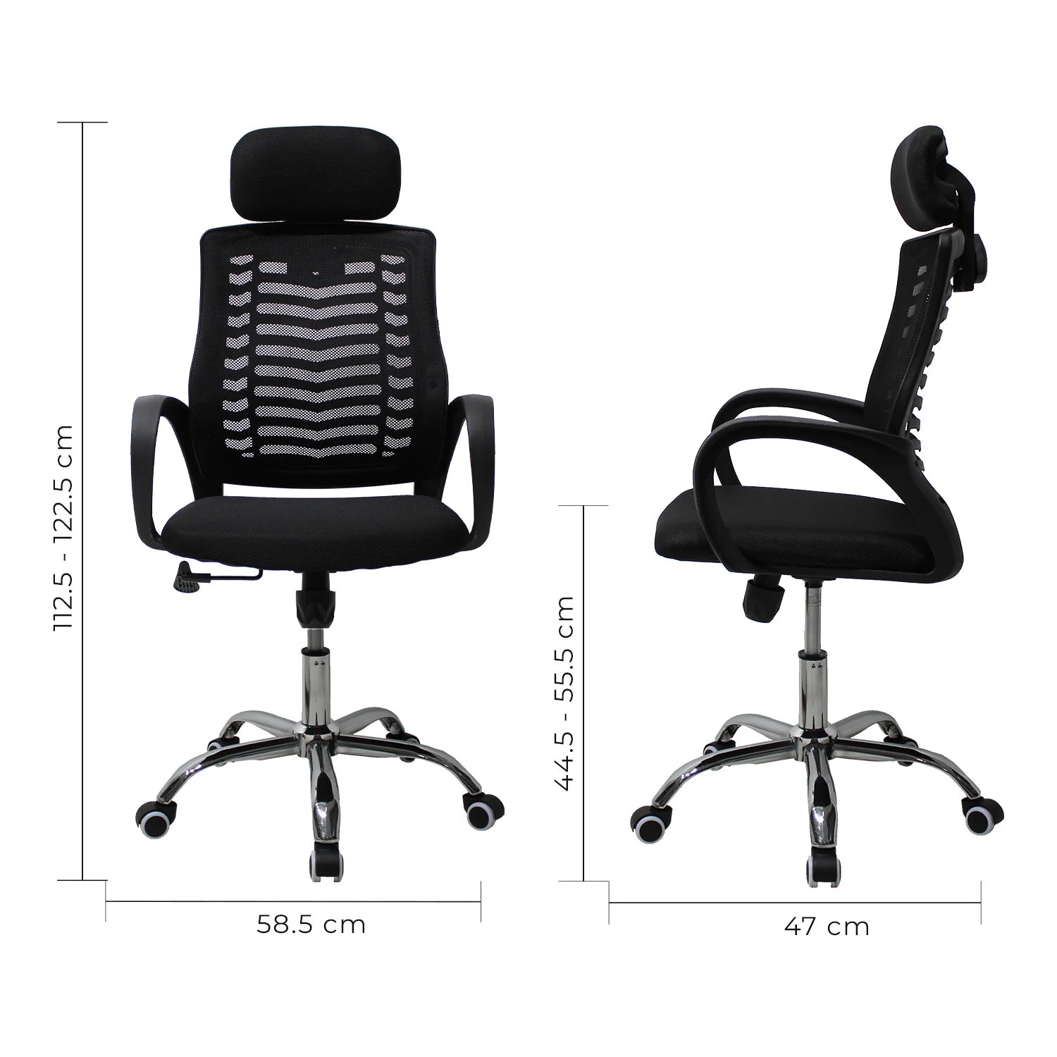 Sumérgete en la comodidad con la Silla de Oficina Ergonómica de Mundo In. Diseñada meticulosamente para ofrecer un respaldo y asiento acojinados que se adaptan perfectamente a ti, junto con un soporte lumbar tapizado en tela tipo mesh, garantizando horas de confort sin molestias. Adáptala a tu altura ideal con su mecanismo 100% ajustable, y disfruta de su giro completo de 360° para una visión clara y cómoda de tu pantalla. Sus descansabrazos añaden una capa adicional de relajación. Mueve libremente gracias a su base tipo estrella en metal cromado y sus 5 ruedas de PU. Con el respaldo de Mundo In, líderes en mobiliario de oficina, esta silla no solo complementa tu espacio de trabajo, sino que también potencia tu bienestar diario.