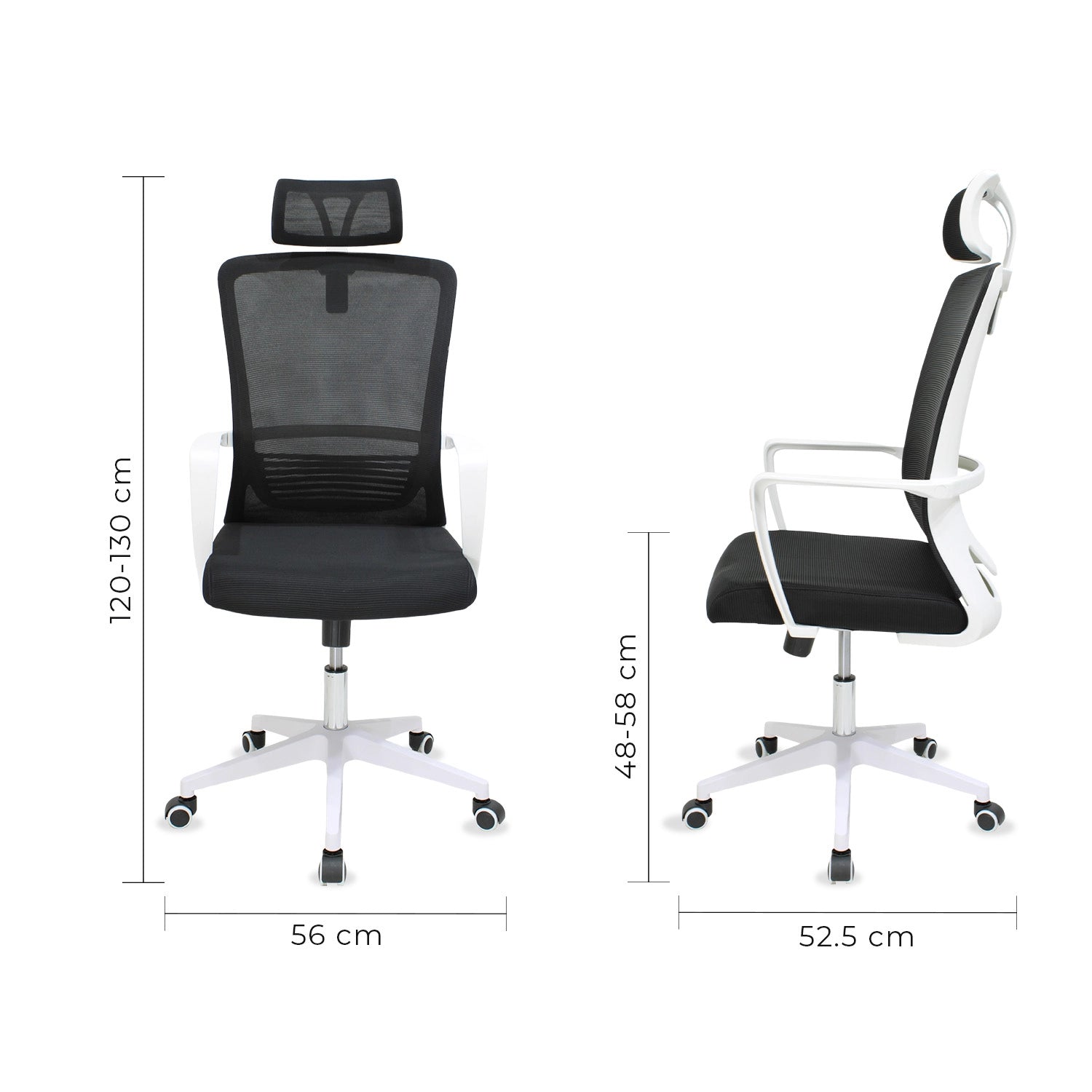 • Base: robusta y ruedas giratorias, para máxima movilidad y estabilidad.