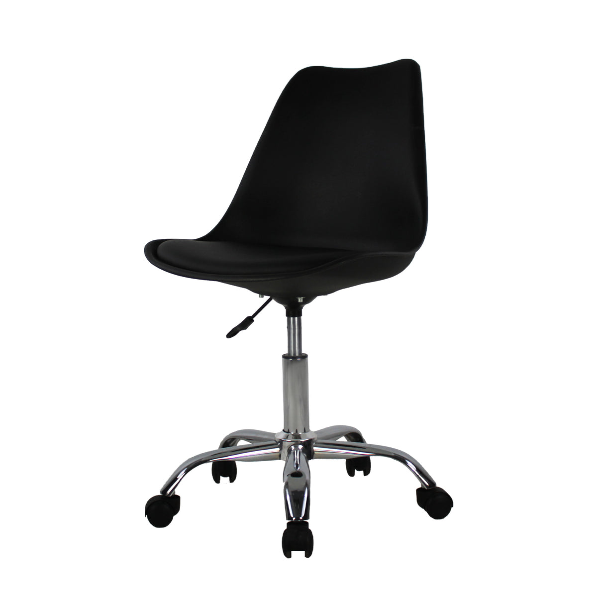 - PRÁCTICA Y DURADERA: El asiento es de polipropileno acojinado tapizado en vinipiel; Base giratoria con pistón neumático y palanca reguladora de altura; Esta silla para oficina tiene un diseño elegante y simple que combina a la perfección con distintos diseños de decoración.